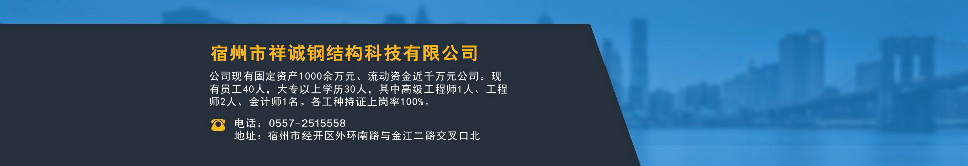 宿州市祥誠鋼結(jié)構(gòu)科技有限公司位于宿州市經(jīng)開區(qū)外環(huán)南路與金江二路交叉口北,公司是一家以建設(shè)產(chǎn)業(yè)化為目標(biāo),匯集大型鋼結(jié)構(gòu)廠房、彩鋼活動房設(shè)計(jì)、制作、安裝施工一條龍服務(wù)的知名鋼結(jié)構(gòu)公司。公司現(xiàn)有固定資產(chǎn)1000余萬元、流動資金近千萬元公司。現(xiàn)有員工40人,大專以上學(xué)歷30人,其中高級工程師1人、工程師2人、會計(jì)師1名。各工種持證上崗率100%。高效化的年青團(tuán)隊(duì)為公司帶來了蓬勃發(fā)展的動力,全體員工以務(wù)實(shí)的態(tài)度,拼搏的精神,創(chuàng)造著企業(yè)的每一天。 公司組織結(jié)構(gòu)嚴(yán)格按現(xiàn)代企業(yè)制度設(shè)計(jì),管理機(jī)構(gòu)設(shè)置合理,制度完善,各部門分工明確...